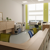 Это решение позволяет печатать форматы от А5 до А1, так же предусмотрено оборудование для постобработки: резак, ламинатор, переплетчик, степлер, фальцовщик и термоклеевая машина.